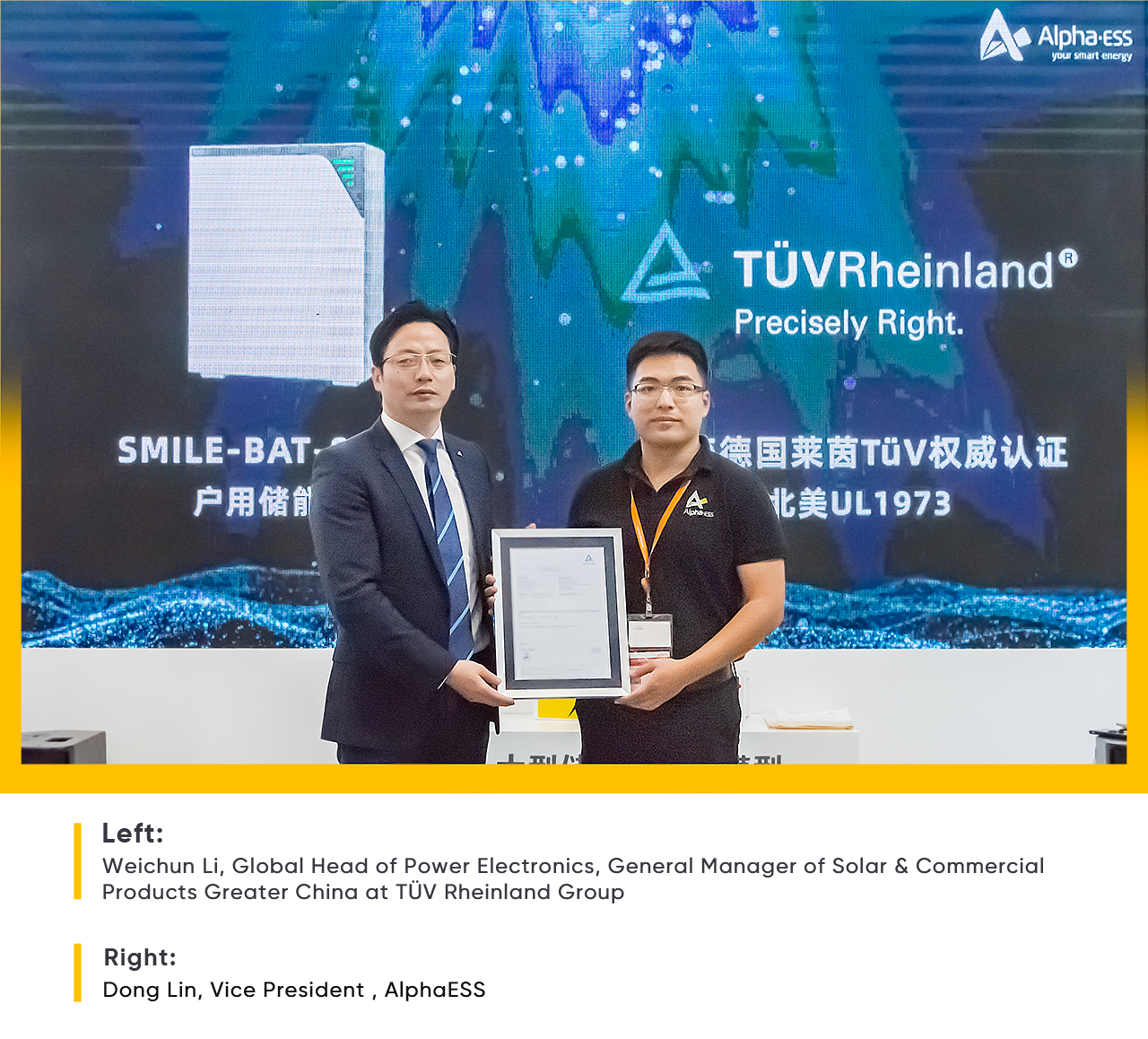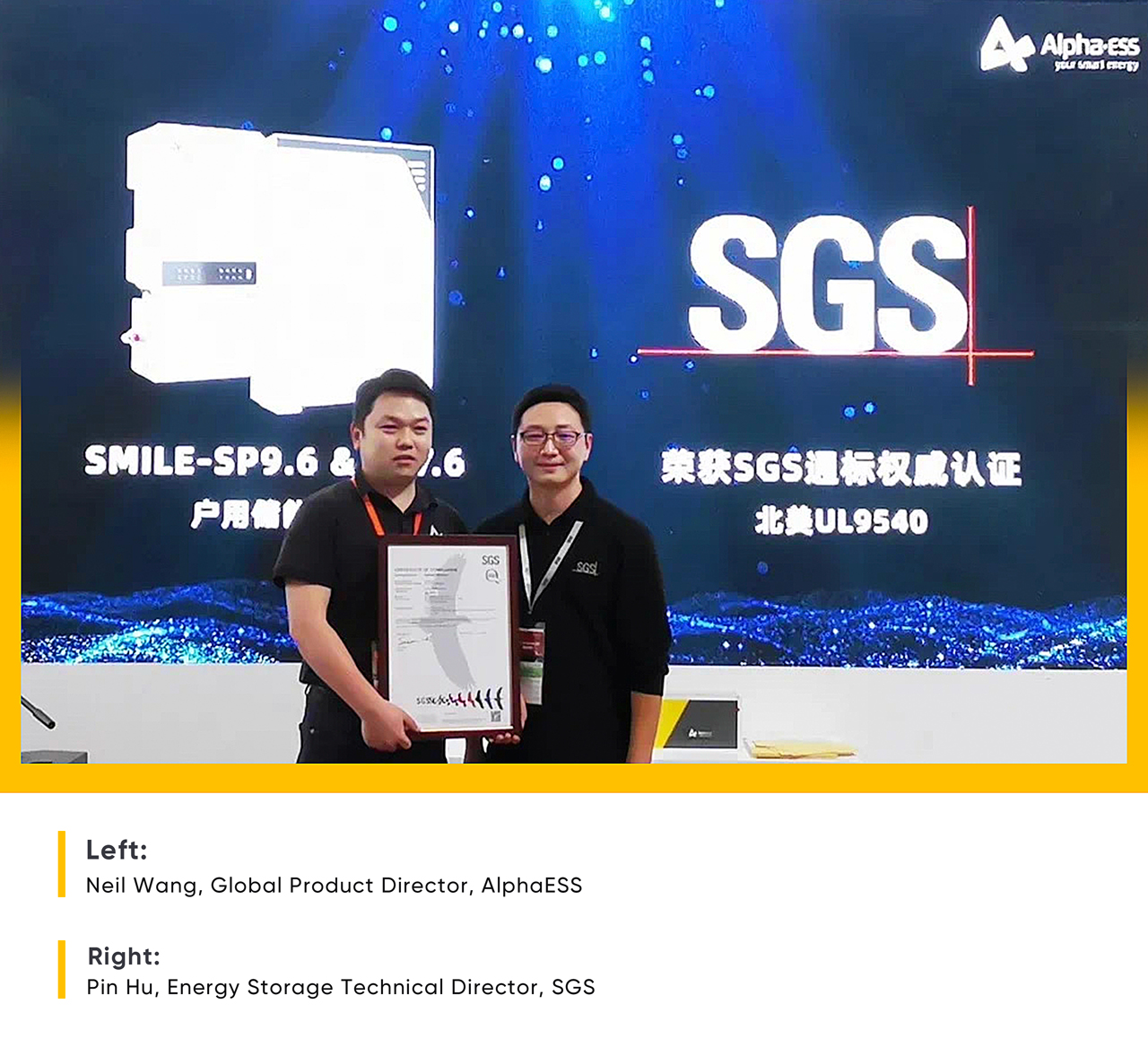 Dr. Dong Lin, vice president of AlphaESS, said: with the recognition of TÜV Rheinland and SGS, ‘Alpha-made’ will keep on trying to be the best energy storage system provider in the industry!