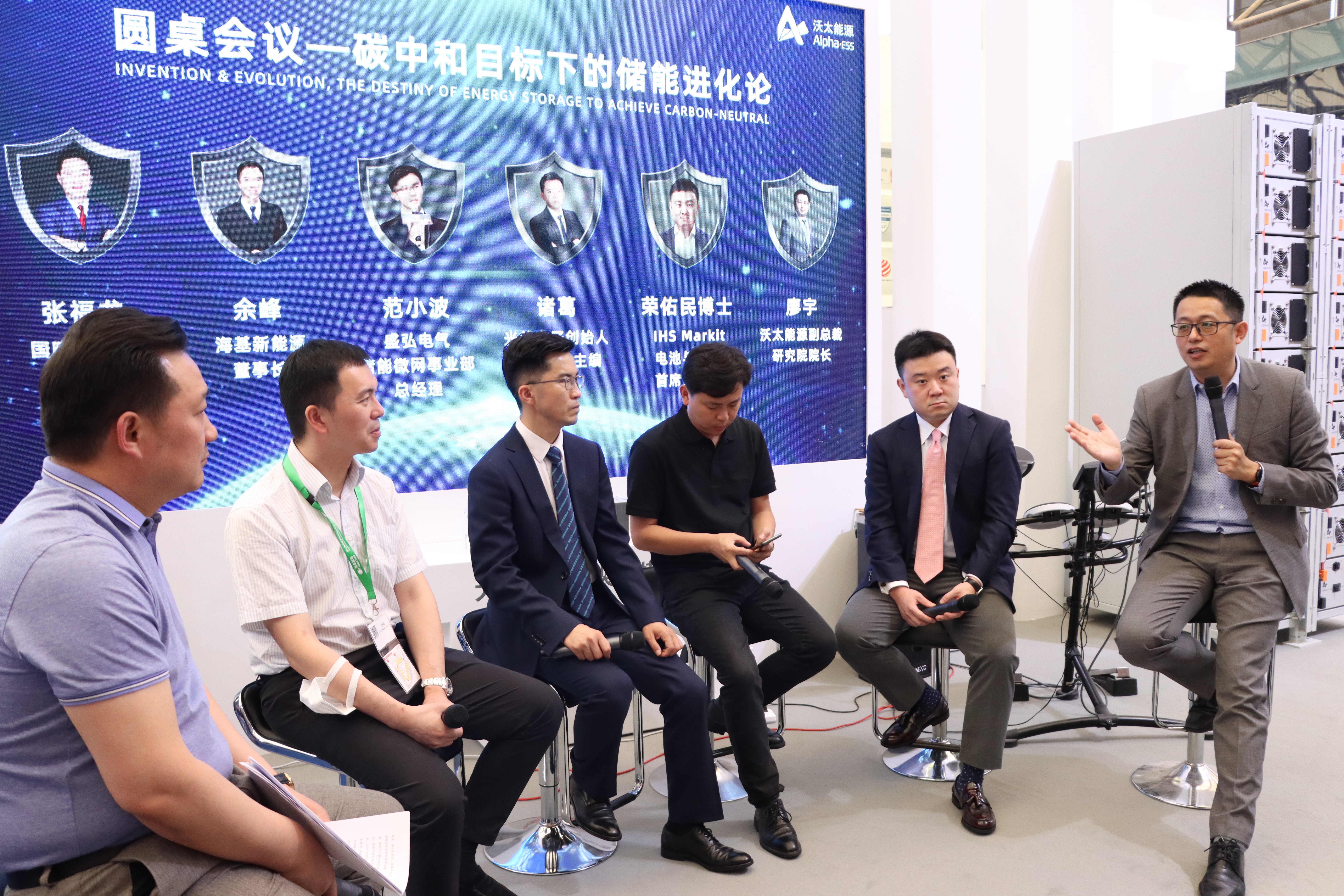 AlphaESS invited six big names in the industry to join the round table conference. At the meeting, the host Mr Fulong ZHANG , President of International Energy Network (IN-EN.com), Mr. Feng YU, Chairman of Higee Energy, Mr. Xiaobo FAN, General Manager of Sinexcel Electric Energy Storage Micro-grid Division, Mr. Ge ZHU, Founder and Editor-in-Chief of PV Box/Energy Box, Dr. Youmin RONG, IHS Markit Chief Analyst of Battery and Energy Storage and Mr. Yu LIAO, Vice President of AlphaESS and Dean of AlphaESS Research Institute shared their insightful perspectives about the destiny of energy storage to achieve carbon neutral.