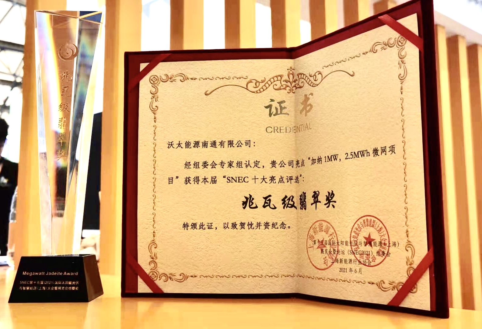 On June 5th, at the SNEC Top Ten Highlights Award Ceremony, AlphaESS' "Ghana 1MW, 2.5MWh Micro-grid Project" won the SNEC Top Ten Highlights Megawatt Emerald Award.