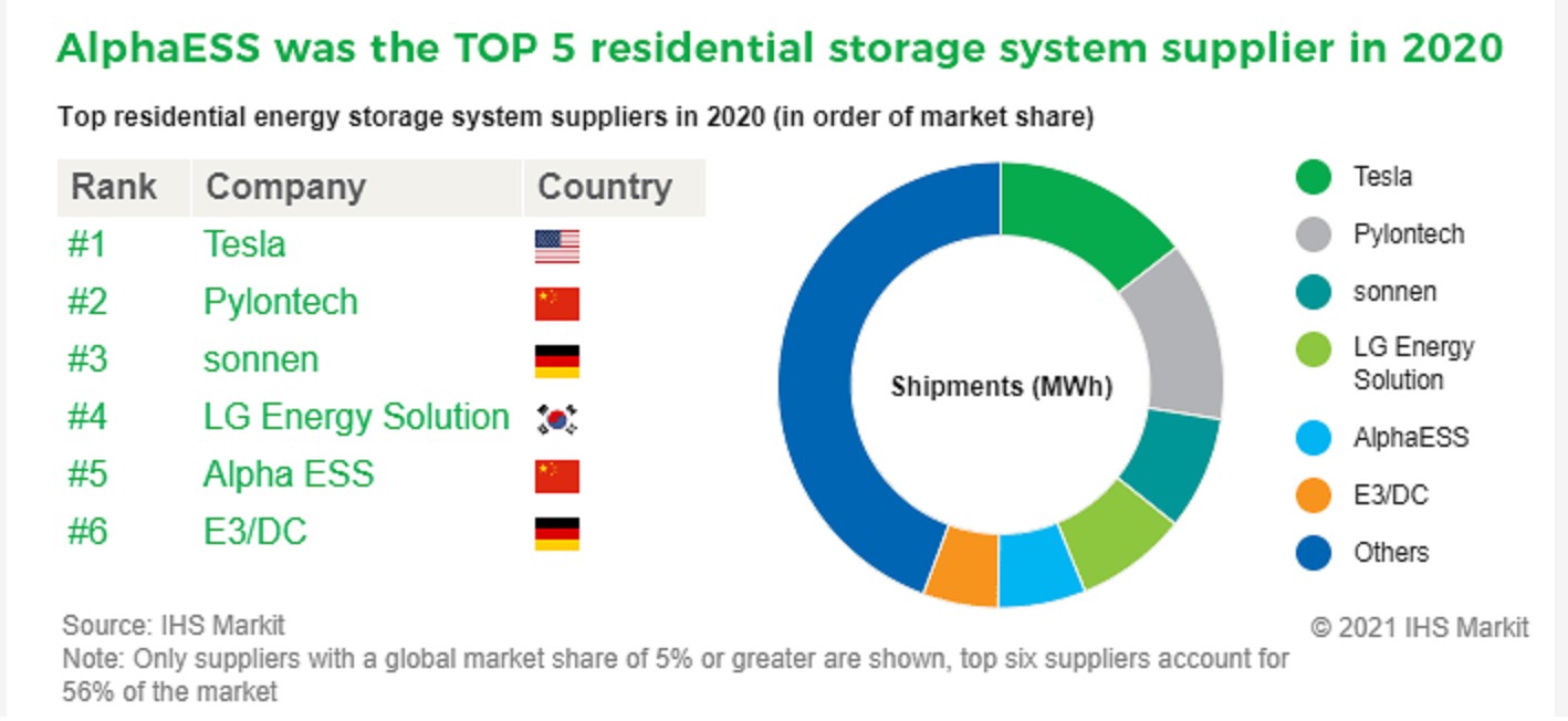 AlphaESS Ranks the TOP 5 Supplier of the Global Residential Storage System in 2020