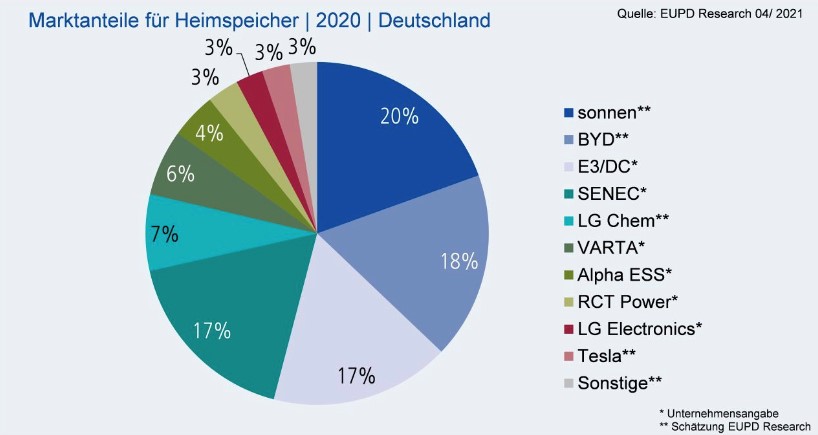 The TOP 10 energy storage solution provider in Germany, one of the core markets as for the residential storage industry internationally. AlphaESS got 4% of the market share in 2020, even higher than that of Tesla.